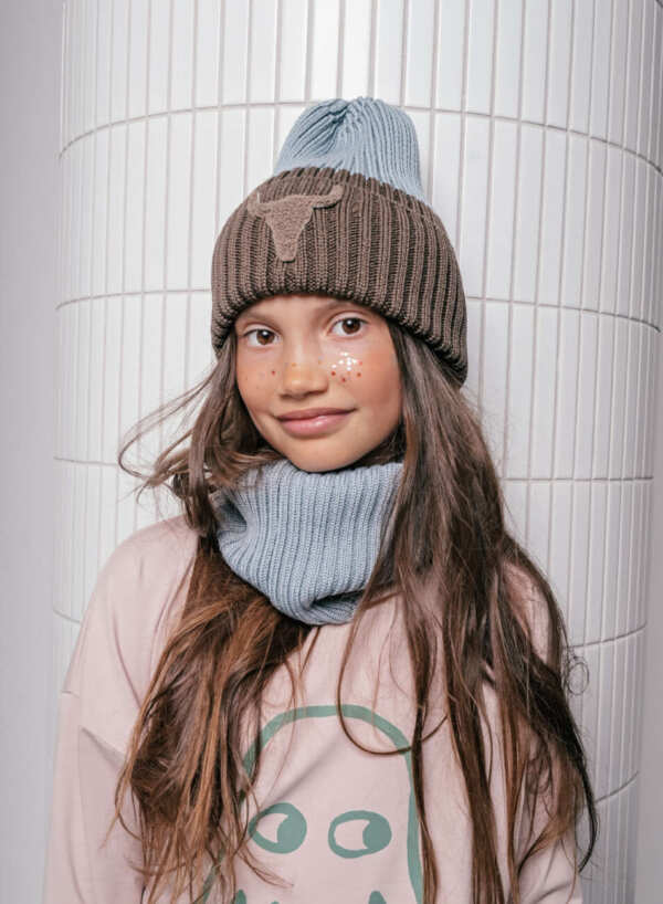 BOOSO – SAND BEANIE brown/light blue – czapka zimowa