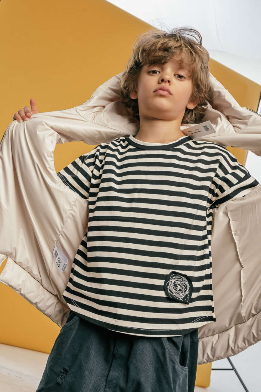 BOOSO – striped ecru/black tee – t-shirt w paski