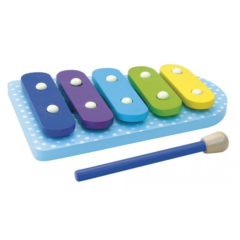 Drewniane cymbałki w kolorze niebieskim marki Jabadabado – idealnie nadają się dla maluchów rozpoczynających przygodę z muzyką. W pełni bezpieczne dla dzieci powyżej 18 msc, posiadają jedną drewnianą pałeczkę i pięć drewnianych klawiszy.