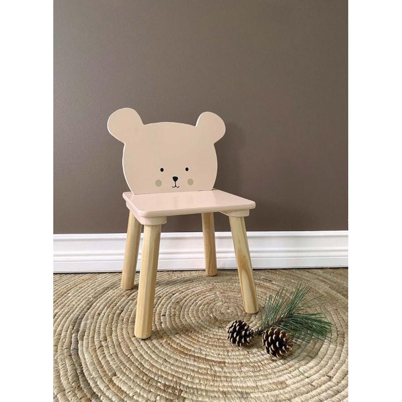 Niezwykle urocze drewniane krzesełko z oparciem – miś to idealny i praktyczny dodatek do dziecięcych wnętrz. Idealnie wpasuje się również jako nocny stoliczek na książkę lub lampkę. Oryginalnie wykonane i wygodne krzesełko zachęci malucha do tworzenia pierwszych i kolejnych prac plastycznych przy stoliku, czy biurku.  Krzesełko miś jest wykonane z drewna w pastelowo różowej  kolorystyce, idealnie pasuje do stolików i biurka skandynawskiej marki Jabadabado.