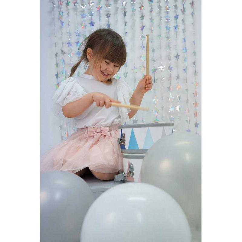 Zabawny drewniany różowy bębenek Jabadabado dla małych miłośników muzykowania. Bęben z pałeczkami to idealny instrument do nauki gry dla przyszłych małych perkusistów. Bęben posiada specjalny pasek umożliwiający zawieszenie instrumentu muzycznego na szyi oraz dwie drewniane pałeczki. Instrument pobudza poczucie rytmu u dzieci i wprowadza w świat muzyki.