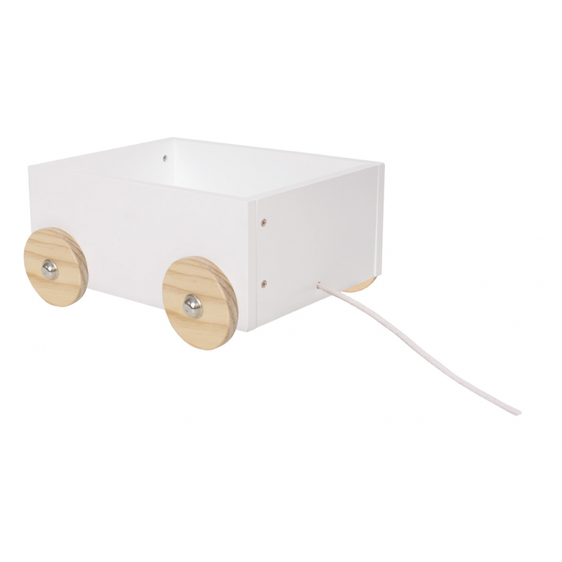 Drewniany pojemnik na zabawki na kółkach ze sznureczkiem, niezwykle funkcjonalny i bardzo elegancki – pomoże zapanować nad bałaganem w dziecięcych zabawek. Drewniana skrzynia na kółkach szwedzkiej marki Jabadabado jest w kolorze niezobowiązującej bieli, idealnie wpasuje się w każdy styl -a kólka w kolorze naturalnego drewna -jest to wręcz idealne połączenie.