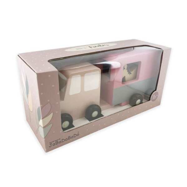 Wspaniały drewniany samochód w różowej kolorystyce z przyczepą do przewozu koni. Na pokłądzie tego uroczego auta znajdują się trzy konie, każdy z nich w innej kolorystyce. Idealny pomysł na prezent- sprawi wiele radości fanom koni, jak i wielbicielom zabawy w wiejskie podwórze. Ta drewniana ciężarówka składa się z auta i przyczepy z rampą, którą można odpiąć i jeździć jedynie autem. Jest to zabawka idealna do tworzenia niepowtarzalnych historii i przeżywania niezwykłych przygód.