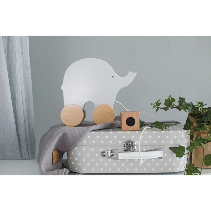 Uroczy drewniany szary słonik na sznureczku do ciągnięcia szwedzkiej marki Jabadabado. To ponadczasowa, klasyczna zabawka drewniana znana od wieków i uwielbiana przez dzieci, szary słoń to estetyczna, skandynawska jej odsłona. Słonia pokochakażdy maluch stanie się nieodzownym kompanem pieszych wycieczek, i pięknym elementem dekoracyjnm w pokoju dziecięcym. Zabawka do ciągnięcia ćwiczy koordynację ręka – oko, oraz pomaga w utrzymywaniu równowagi i w nauce stawiania pierwszych kroków.