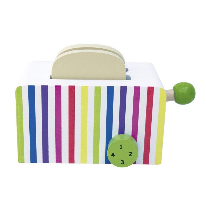 Zabawny drewniany toster JaBaDaBaDo – to świetny dodatek do kuchni Twojego małego szefa. Gotowe tosty po wciśnięciu gałki wyskakują jak z prawdziwego tostera! Ten drewniany toster zapakowany jest w efektowne pudełko- idealnie nadają się na prezent.