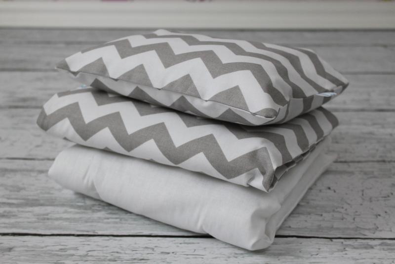Wsypy z białej bawełny wypełnione hipoalergiczną silikonową włókniną.