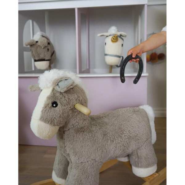 Ten pluszowy koń na kiju to doskonała postać do organizacji różnych przedstawień teatralnych i zabaw kreatywnych. Zabawka na kiju dla dziecka często zabiera głos podczas tych przedstawień. Dzięki temu, najmłodsi poznają nowe słowa i uczą się je poprawnie artykułować. Brązowo-biały koń na kiju został dokładnie dopracowany. Ta przepiękna maskotka na drewnianym kiju na pewno spodoba się dzieciom.