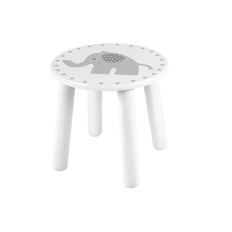 Urocze drewniane krzesełko, taboret szary słoń marki Jabadabado to oryginalne uzupełnienie wyposażenia pokoiku dziecięcego. Jego ciekawy wygląd zachwyci każdego, zarówno tych młodszych jak i starszych. Krzesełko białe ze słonikiem w kolorze szarym.