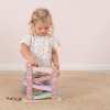 Ustawiamy autko na szczycie zjeżdżalni i fruuuu…, poprzez kolejne poziomy samochodzik zjeżdża na sam dół. To wspaniała zabawa dla małego fana motoryzacji. Drewniana, zabawkowa zjeżdżalnia dla autek Little Dutch jest w kolorze błękitno-miętowym i posiada 4 poziomy.