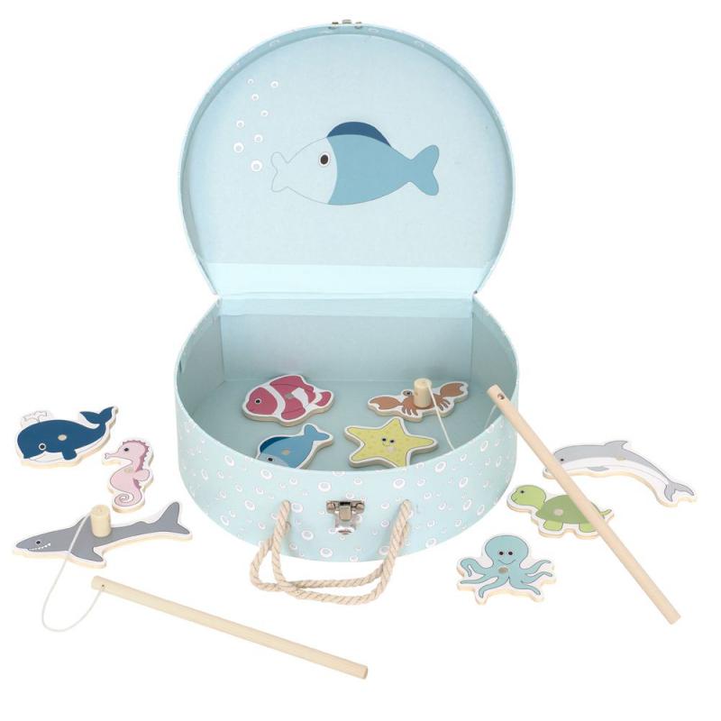 Rybki do łowienia to świetna gra zręcznościowa, w zestawie dwie wędki, kolorowe rybki i morskie stworki, oraz śliczne pudełeczko akwen do łowienia i przechowywania gry. Drewniana gra "Łowimy rybki" to wspaniała zabawa, która będzie długo towarzyszyła dziecku. Początkujący gracze łowią rybki za pomocą wędki, której uchwyt jest zakończony magnesem. Ten kto złowi więcej rybek, wygrywa grę.