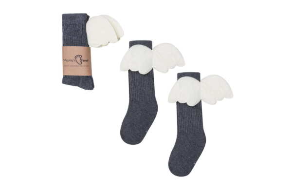 Aniołki to seria przepięknych jednobarwnych podkolanówek z niecodziennym, zaskakującym dodatkiem …. ANIELSKIMI SKRZYDEŁKAMI! Podkolanówki w kolorze pudrowego różu mają z tyłu nogi, na łydce doszyte skrzydełka 3D, które uskrzydlą każdego <3