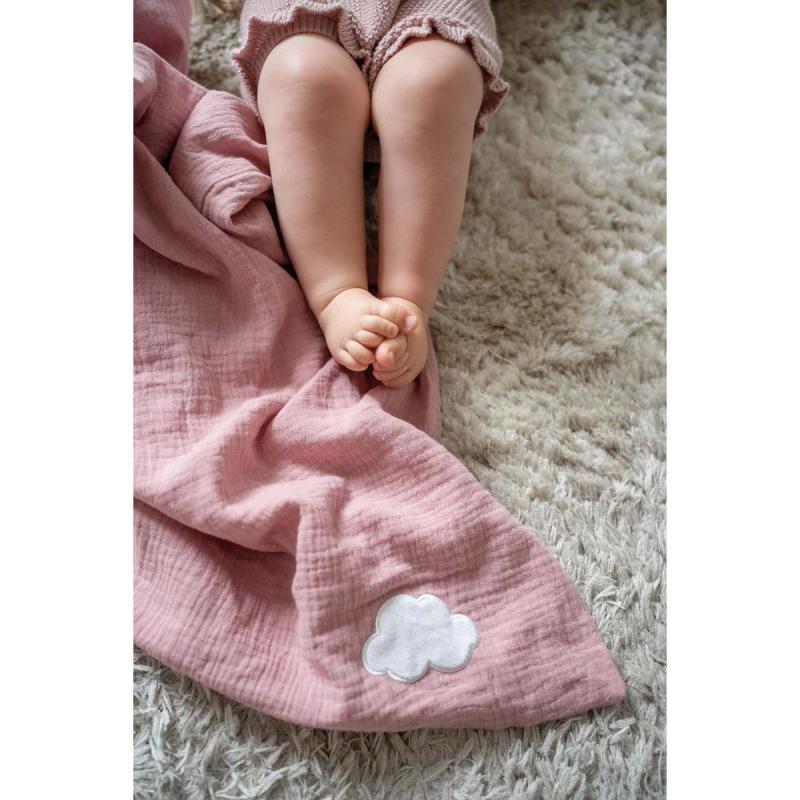 Niezwykle delikatny i przyjemny w dotyku muślinowy kocyk, otulacz skandynawskiej marki Jabadabado – w kolorze pastelowego różu z uroczym motywem białej chmurki. Idealnie dostosowany do potrzeb niemowląt. Mięciutki i milutki kocyk spełni oczekiwania najbardziej wymagających. Otuli i ogrzeje do snu Twojego maluszka!