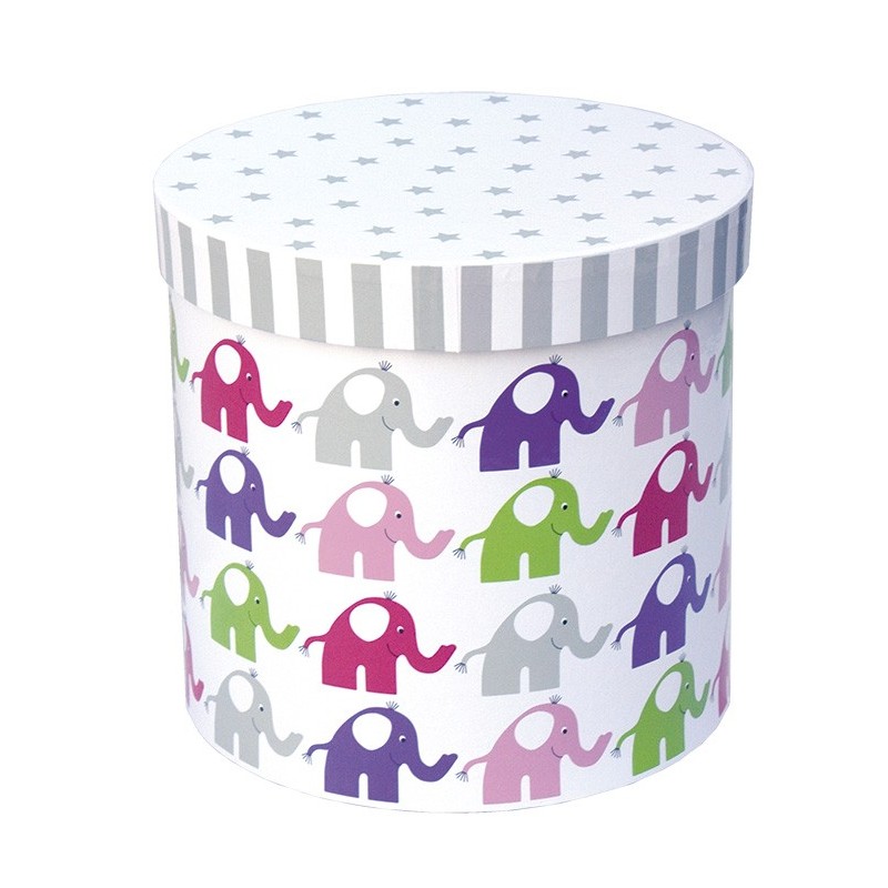 Okrągłe kartonowe pudełeczka marki Jabadabado – nie tylko pomogą utrzymać porządek w pokoju naszych dzieci, jak również będą niezwykłą dekoracją. Zestaw trzech pudełek z wizerunkiem słoni, każde pudełko w innym rozmiarze.