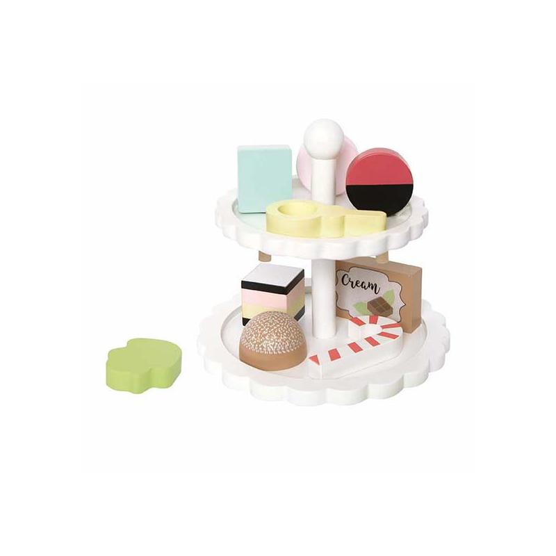 Świetna zabawka drewniana dla małej gosposi, patera będzie doskonałym uzupełnieniem dziecięcej kuchni, ale także samodzielnym zestawem do zabawy dzięki któremu Twoje dziecko przygotuje apatyczny deser dla swoich lal i misiów i niewątpliwie zaprosi na niego także Ciebie 🙂