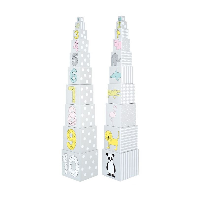 Piramida – wieża marki Jabadabado składa się z 10 klocków wykonanych z najwyższej jakości grubego kartonu. Doskonale nadaje się już dla rocznego dziecka, któremu zarówno budowa wieży, jak i jej przewracanie sprawi dużo radości! Zabawka wspiera rozwój umiejętności motorycznych i koordynacji u dziecka.