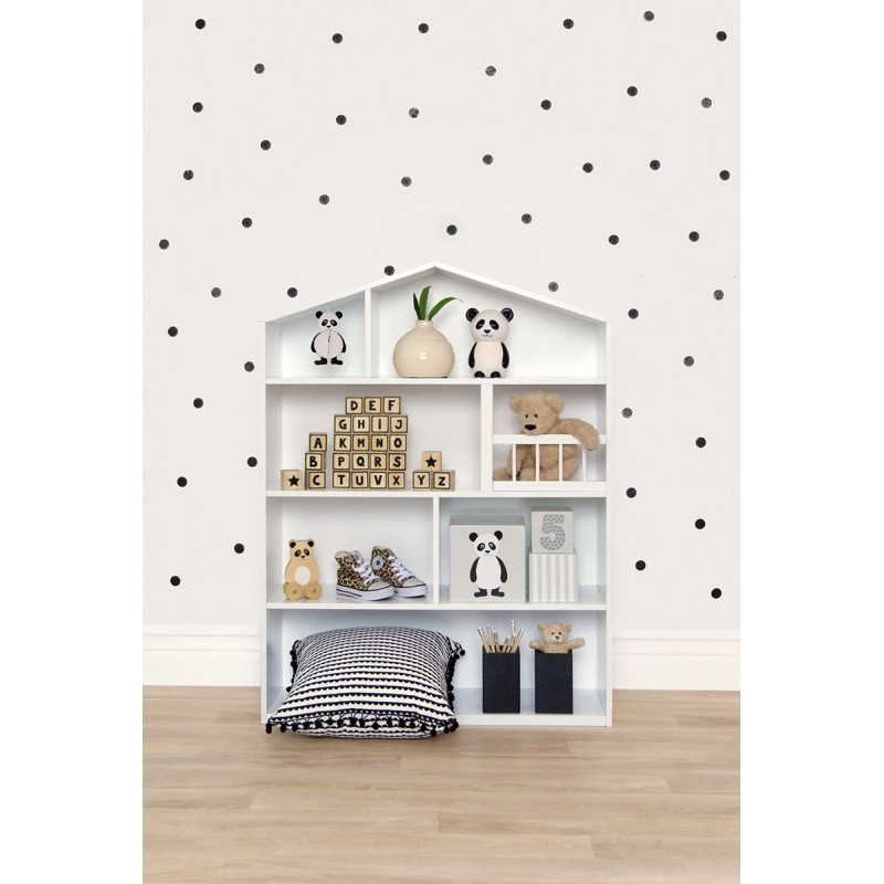 Drewniana półka, biały regał w kształcie domku to idealny pomysł na stylowe wnętrze dziecięcego pokoju. Ta piękna półka wygląda niczym bajkowy domek dla lalek, sprawdzi się jako domek do zabawy lub regał na książki, zabawki i wszystkie skarby malucha. Sprawi, że wnętrze pokoju Twojego malucha nabierze kolorytu i blasku, półka może stać na podłodze lub dzięki specjalnym zaczepom może być przyczepiona do ściany, dzięki czemu będzie bezpieczna nawet, gdy maluch spróbuje się po niej wspinać.