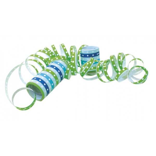 Zestaw dwóch serpentyn urodzinowych w kolorze niebieskim i zielonym . Idealnie pasują do urodzinowch dekoracji marki Jabadabado, sprawią aby urodziny Twojej pociechy były niezapomniane.