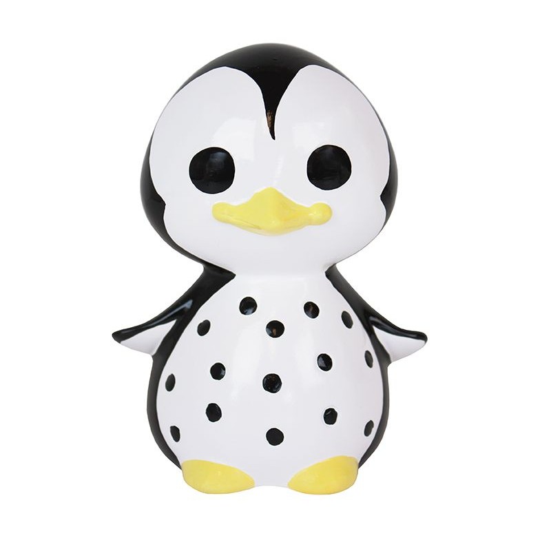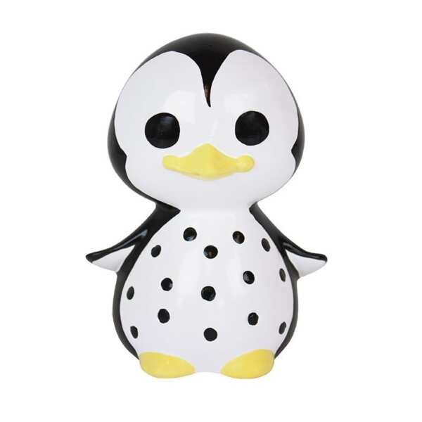 Designerska świnka skarbonka porcelanowy pingwin -to świetny pomysł na oszczędności dziecięce. Porcelanowy pingwin niczym tajny ochroniaż będzie stał na straży Twoich oszczędności. Skarbonka to idealny pomysł na upominek dla dziecka., lub perfekcyjny pomysł na prezent, który pozwala gromadzić maluchowi swoje oszczędności, na przykład na lody lub inne słodkości – pomaga w nauce liczenia , jak również bosko wygląda jako element dekoracyjny pokoju malucha. Skarbonka posiada otwór do wyjmowania pieniędzy.