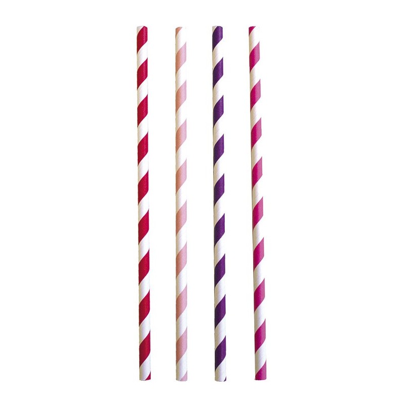 Zestaw dwudziestu czterech słomek w kolorze różowym, czerwonym i fioletowym szwedzkiej marki Jabadabado. Idealnie pasują do urodzinowych gadżetów w tej samej kolorystyce.