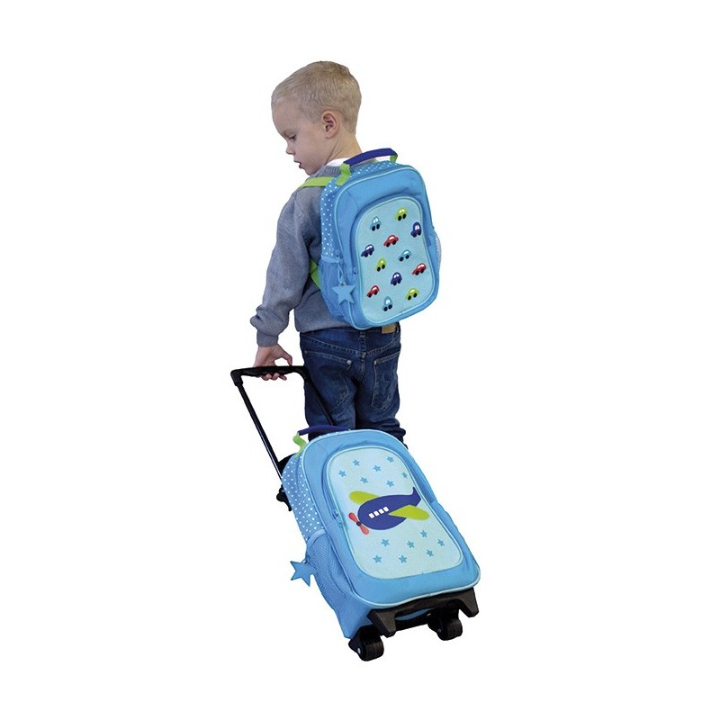 Walizka dziecięca z wizerunkiem samolotu w niebieskiej kolorystyce marki Jabadabado, idealna na podróże te małe i duże. Solidnie wykonana, wyposażona w kółka- pomieści wszystkie skarby malucha. Urocza, designerska i nowoczesna walizka na kółkach dla dzieci, dzięki niej Twój maluch poczuje się bardziej samodzielny i odpowiedzialny.