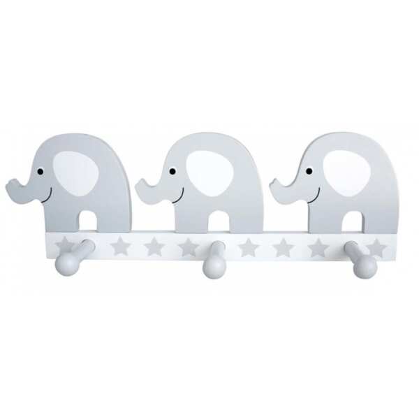 Uroczy drewniany, potrójny wieszak szare słonie szwedzkiej marki Jabadabado – idealnie wkomponuje się w wystrój pokoju Twojego dziecka. Pozwoli zapanować nad chaosem wśród ubrań, i uczy malucha samodzielności w dbaniu o porządek w pokoju. Jest dopełnieniem całej kolekcji Jabadabado z motywem słoni.