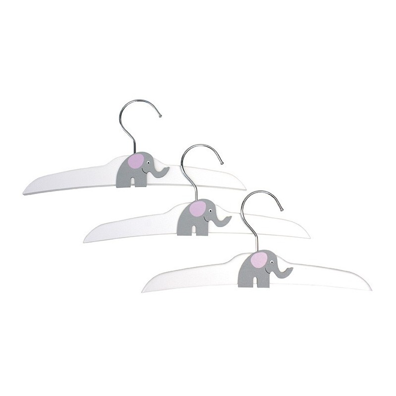 Zestaw trzech drewnianych ozdobnych wieszaków z szarym słoniem marki Jabadabado. Piękne wieszaki do dziecięcej szafy lub jako dekoracja pokoju dziecięcego.Wieszaki